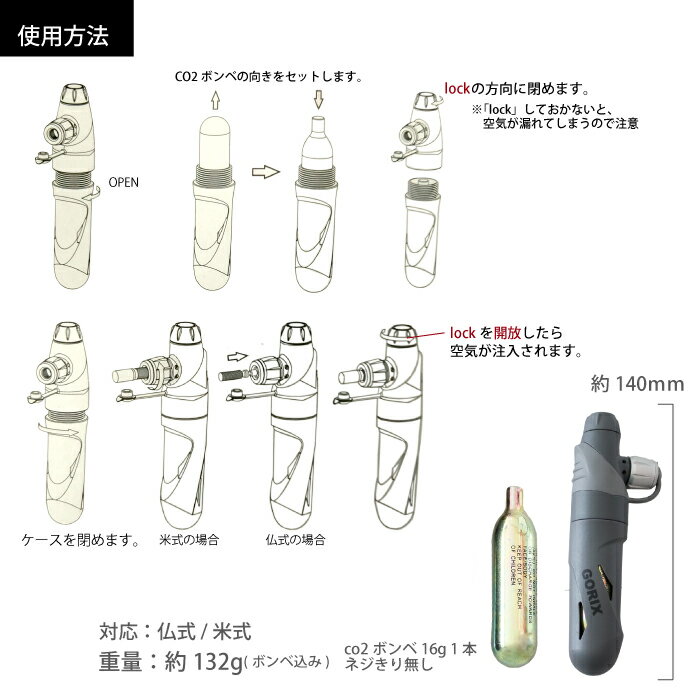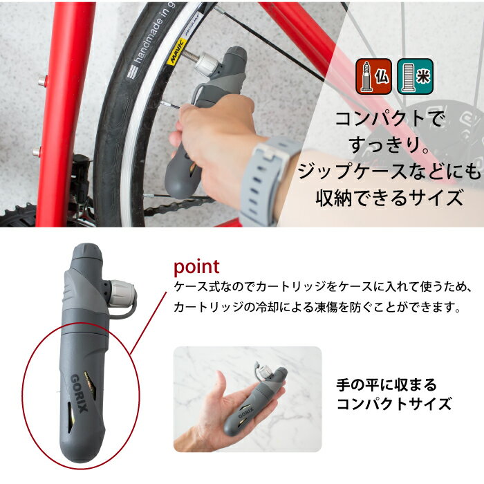 【あす楽】GORIX ゴリックス 自転車携帯ポンプ (GX-04) CO2インフレーター CO2ヘッド ロードバイク 空気入れ 米式 / 仏式