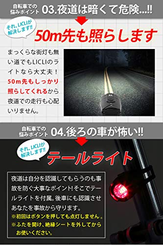 夜間の走行を頻繁に行うという人は、LICLI 自転車ライトを購入しましょう。LICLI 自転車ライトはUSBで充電するタイプのライトで、暗い場所でもしっかりと明るく照らします。