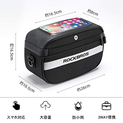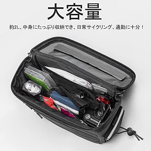 大きめサイズのフロントバッグを探している人には、ROCKBROS(ロックブロス)トップチューブバッグがおすすめ。最大で2Lまでアイテムを入れられます。