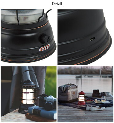 付属されているUSBケーブルを繋いで充電できる充電式で、約4〜6時間でフル充電することができます。調光具合にもよりますが、約3〜80時間使用することができる充電式LEDランタンです。Ipx4の防水仕様でもありますので、小雨程度の雨であれば、表面に水分がかかった場合にも壊れることもありません。また5〜200ルーメンの間で無段階調光可能なので、使用環境に応じても、ちょうど良い明るい光に設定できます。色は2種類から選べるアンティークボディのLEDランタンです。
