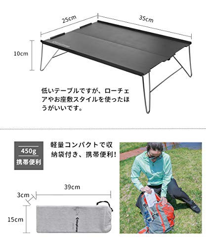 アウトドアテーブル ミニローテーブル ソロキャンプ コンパクト 折りたたみ式 アルミ製 超軽量 収納袋付き (グレー)