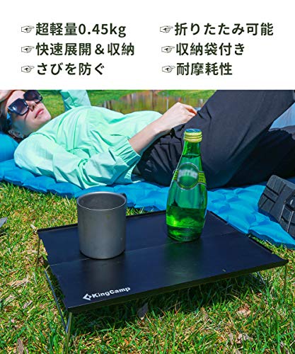 KingCamp アウトドア テーブル ミニ ソロ キャンプ 35x25cm 超軽量0.45kg ローテーブル コンパクト 折りたたみ アルミニウム合金 転落防止加工 安定性 耐摩耗性 耐腐食 ツーリング BBQ