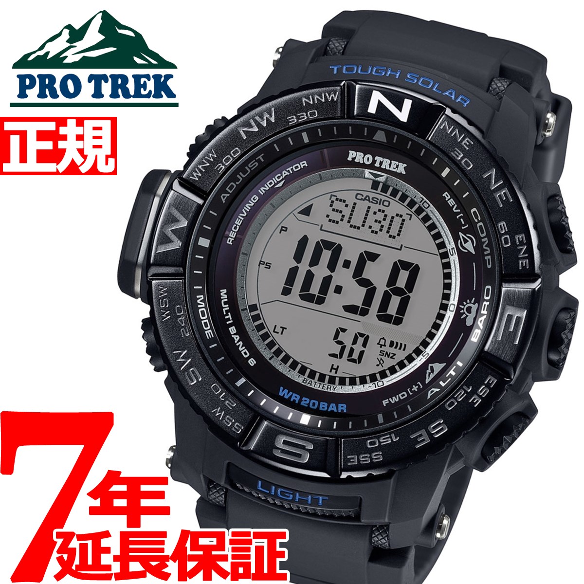 | 仕様 | タフソーラー(ソーラー充電システム)、20気圧防水機能、LEDバックライト(フルオートライト、スーパーイルミネーター、残照機能、残照時間切替(1.5秒/3秒)付き) |