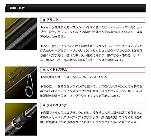 シマノとジャッカルの共同開発で2013年に発売された息の長い製品です。新作の1.78m品(2510UL)から2.11mの2611MHタイプまでラインナップ。自重は82gから105gと軽量です。