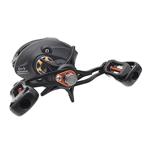 高強度ナイロンプラスチックボディを採用していたり、CNC加工されたアルミ製スプールや、コンフォートハンドルノブなど、高精度でかつ最強クラスの耐久性の部品を採用しているおすすめベイトリールです。またダブルステンレスメインシャフトや真鍮製のギアがドラムシステムを強化している事で、巨大サイズのブラックバスとも難なく戦う事が出来ます。選び方では右と左のハンドルより決められます。