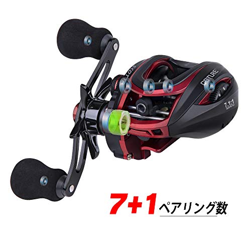 小さな磁石が10個もサイドパネル内に取り付けられているため、スプールに近づけたり離したりすることによりブレーキ強弱を調整することが可能です。また1回転による巻き取り量が多い7.1:1ギア比のリールを採用していて、手返しよく釣りをすることができます。選び方では7種類の商品から決める事が出来ます。お値段もお安く使いやすいと評判のベイトリールなので、コスパを求める方やブラックバス釣りが初心者の方にもおすすめです。