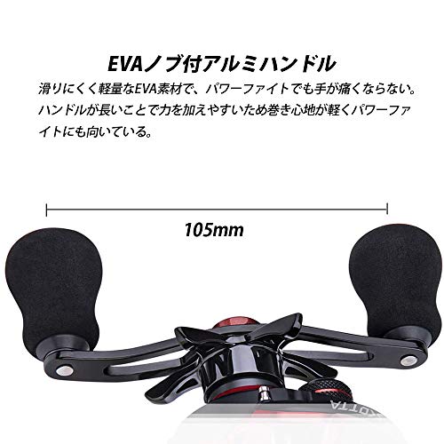 フォールも素早い特徴を持つTウイングシステム搭載です。小型化されたフレームを採用していることで190gの重さを実現しています。装備されているレングス85mmアルミニウムプレスハンドルはグリップ性にも優れており、快適に巻き上げられます。選び方では幅広いギア比の左右のハンドルより決められるブラックバス釣りにおすすめなベイトリールです。