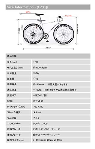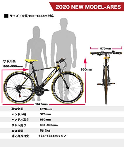| 仕様 | フレーム/PROFORMAT ST-SHAPE Aluminium A6061・インテグラルヘッド、ギアクランク/SHIMANO FC-RS200 50-34T・390-490mm:165L / 540mm:170L |