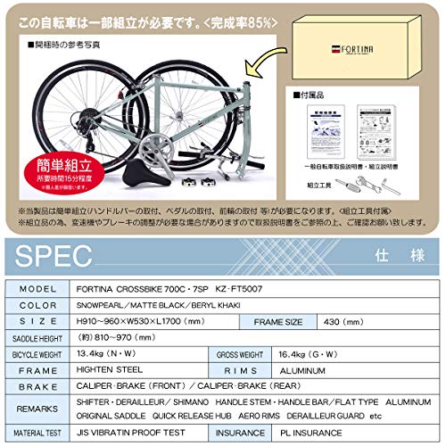 | 仕様 | フレーム/高炭素鋼、適応身長:155~185cm、85%の組立済み状態でお届け。1年間保証サービス付き |