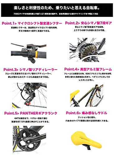 パンサーというメーカーより販売されている軽量なアルミフレームを採用している人気フラットバーロードになります。色は全部で6種類ありますので、比較してお好みのカラーより選んで使えます。