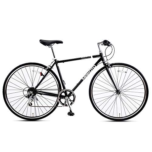 軽量な炭素鋼フレームを採用している自転車で、スピードにのったサイクリングをマンションことができます。また世界的にも評判の良いメーカー・シマノの外装6段変速機を採用しているため、街乗りとは別に、長距離のロングライドにまで対応して乗ることができます。回転式のグリップシフターを採用しているため、素早くギアを切り替えることもでき、初めての方にも乗りやすい人気のフラットバーロードです。前輪はクイックレリーズレバーにて簡単にタイヤを取り外しすることが可能なので、車に積み込みすることも簡単で、旅行先でもサイクリングを楽しむことができます。高強度700Cアルミニウムディープリムを採用していたり、スポーツバイク仕様の制動力に優れたキャリパーブレーキを採用している特徴もあります。お値段も非常に安いのでコストパフォーマンスも抜群で人気です。