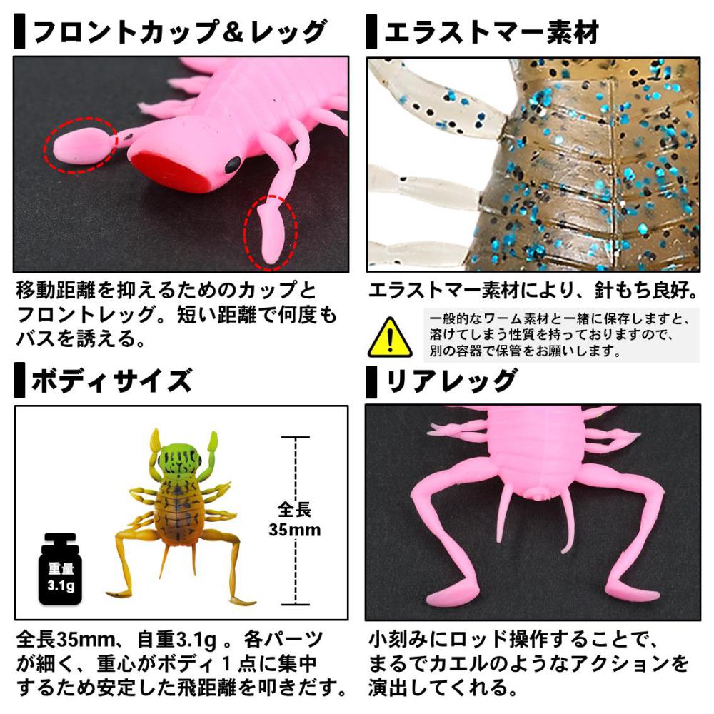BOTTOMUP(ボトムアップ)の「Hurry Shrimp(ハリーシュリンプ)」。消波ブロック帯の内側や護岸との間、水門での使用にも有効なルアーです。フォールでのアクションがバスのバイトを誘うため、ダウンショットリグやノーシンカーでのネコリグでも釣果が期待できます。また、消波ブロック帯はほとんどのバサーが入れかわり立ちかわり攻めておりハイプレッシャーなため、テール部分をカットし初めからサイズをダウンさせて使用するのも効果的です。