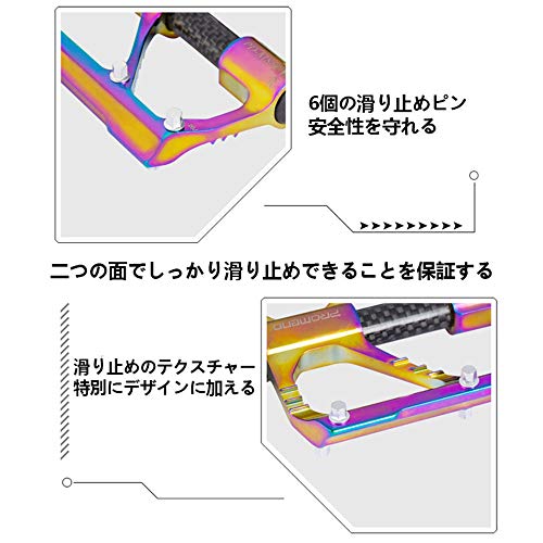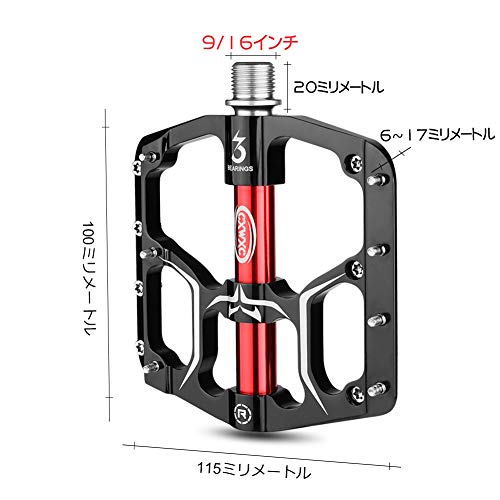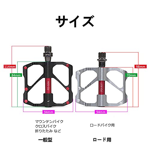 両面に6つの滑り止めピンが付いているのでペダルに足を置いた時もホールド感が良いです。光沢処理が表面に施されており、耐腐食性にも優れている特徴を持っているフラットペダルとなっています。なお、サイズはマウンテンバイク用とロード用の2種類の大きさがあり、カラーも3色が用意されているので、用途やお好みに合わせて選んでください。