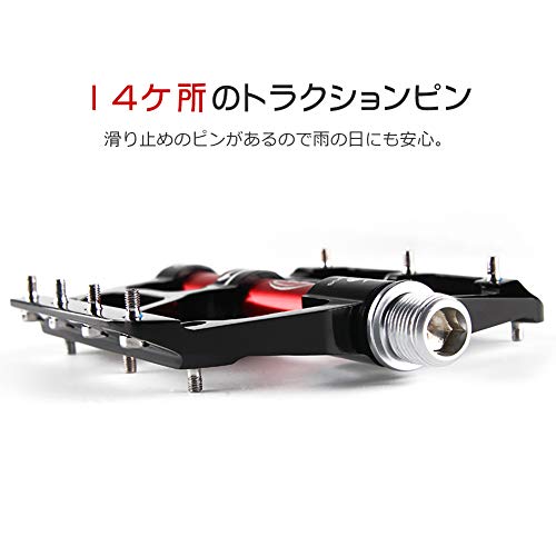 片面に7本の滑り止めピンが付いていますので、自転車を漕ぐのに慣れていない初心者も安全にペダリングできます。外側にシールドベアリングが1つ搭載していて、外側とは別に内側にも2つ搭載されているので、回転がスムーズで耐久性にも優れており、くりぬき形状のアルミ製軽量ペダルなので、汚れが付着しにくいというメリットもある使いやすく便利な商品です。