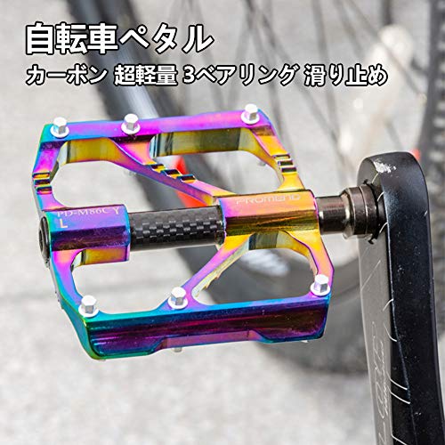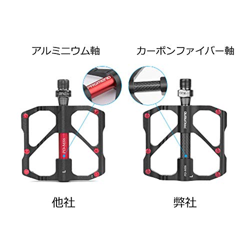 軽量ながらも丈夫さも兼ね備えているアルミ素材の踏み面を採用し、軸には強度に優れたカーボンファイバー素材でモリブデン鋼を包み、軽量化と強度の向上を実現させた高性能のフラットペダルで、ロードバイクにおすすめなのはもちろん、その他にもクロスバイクやMTBにも対応して使うことができます。