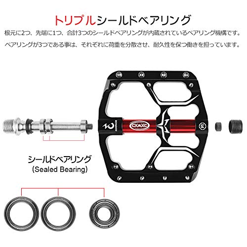 密閉式のペアリングが三つ付いていますので、薄型タイプのフラットペダルな割には強度に優れていて、回転も滑らかでスムーズなペダリングができます。ロードバイクに慣れていない初心者の方にも漕ぎやすくおすすめです。