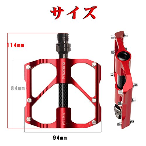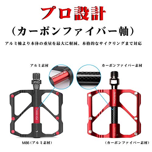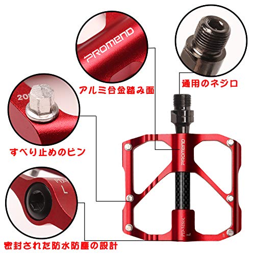 Promendのこちらのクロスバイク用ペダルは、左右セットながらも安いお値段で購入できるので、通販サイトでも人気の高い軽量なペダルです。アルミとカーボンファイバー軸の軽量で幅広なフラットペダルです。