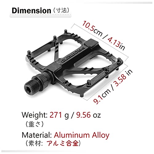 軸のサイズが9/16インチになりますので、クロスバイクだけでなく、ロードバイク・シティサイクルなど幅広い自転車に対応して使用できます。幅が広いフラットペダルなので、足裏サイズが大きい方もしっかりと足全体を乗せることができ、しっかりとした踏み込みができます。