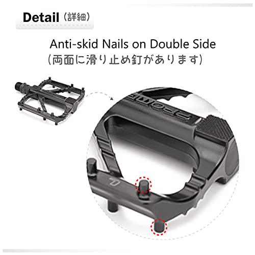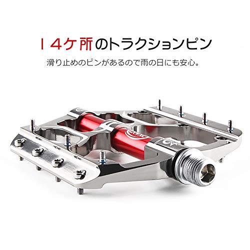 両面に六つの滑り止めピンが付いているため、グリップ性にも優れていて、足を乗せている時にも滑りづらいです。また表面に光沢処理が施されているため傷もなく、耐腐食性や耐摩耗性にも優れているフラットペダルです。滑らかな回転で漕ぎやすく、防水&防塵仕様なので、砂埃の多い環境を移動するときや、雨の時にも安心して使えます。