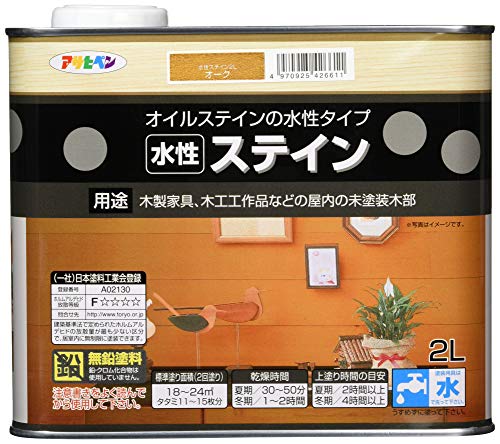 匂いが少なくDIY向きの水性ステインは、塗り方が簡単で扱いやすい塗料です。木に浸透することで木目を生かしながら着色します。ステインには、さまざまなカラーがあり木材にお好みの色を付けておくとワックスを塗った後の仕上がりが、さらに奥行きのある家具に仕上がります。ブライワックスを使う場合は、この手順を省略することができます。