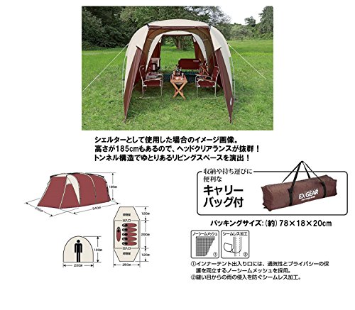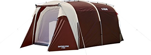 キャプテンスタッグの中で最上位モデルとなるエクスギアシリーズの5~6人用の大きいテントです。人気ブランドのフラグシップモデルですが、日本の他の人気ブランドと比較すると非常に安いコスパのいいテントです。形状がトンネル型ということで設営が簡単で壁が立ち上がっているため一般的なドームテントや同じように設営が簡単なワンポールテントと比べデッドスペースができにくくフロア全体を有効活用できる構造になっています。