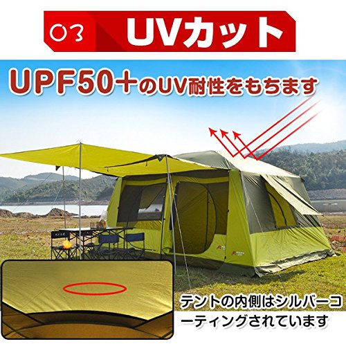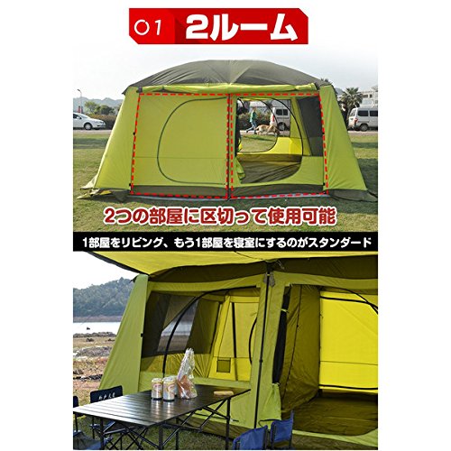 出典: https://www.amazon.co.jp/Coleman-%E3%82%B3%E3%83%BC%E3%83%AB%E3%83%9E%E3%83%B3-%E3%82%A4%E3%83%B3%E3%82%B9%E3%82%BF%E3%83%B3%E3%83%88%E3%83%86%E3%83%B3%E3%83%88-1%E5%88%86%E3%81%A7%E8%A8%AD%E7%BD%AE%E5%8F%AF%E8%83%BD-2%E9%83%A8%E5%B1%8B%E3%81%AB%E3%82%82%E5%88%86%E5%89%B2%E5%8F%AF%E8%83%BD/dp/B00J955FFW/ref=rtpb_1/358-0043010-3681822?_encoding=UTF8&pd_rd_i=B00J955FFW&pd_rd_r=8359e3e0-7c3a-4460-a859-64d3fc1bac56&pd_rd_w=IP5vS&pd_rd_wg=qRy5H&pf_rd_p=8cbc03a1-b057-48d5-8e15-841784c280f3&pf_rd_r=5VFKZGZXKTDESRCWKAHJ&psc=1&refRID=5VFKZGZXKTDESRCWKAHJ日本のワンタッチテントにはなかなかない8人用の巨大なテントです。部屋を2つに仕切れるようになっていますよ。シングルウォールですが通気性がよく360度至るところに大きなメッシュパネルがあり換気しやすくなっています。また雨や風の強い日はきちんとフルクローズでき使い勝手もいいですよ。大型テントは設営が難しいイメージがあるかもしれませんが、折りたたみ傘の要領で簡単に設営できて初めての設営でも15分程度で張れます。