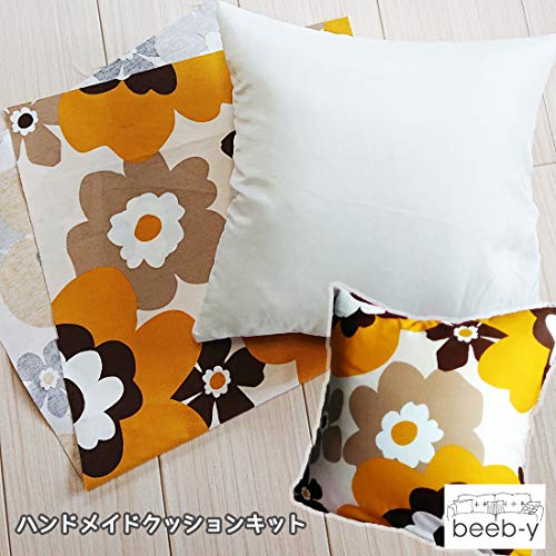 こちらはクッション作り初心者の方向けの35x35センチサイズができあがるカバーと中身のセットです。ファスナーなしで中綿を入れて入れ口をとじつけるだけと簡単な作り方。明るいカラーや柄がそろった17種類の生地の中からお好みのものから選んで購入。すぐ作り始められますよ。