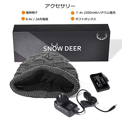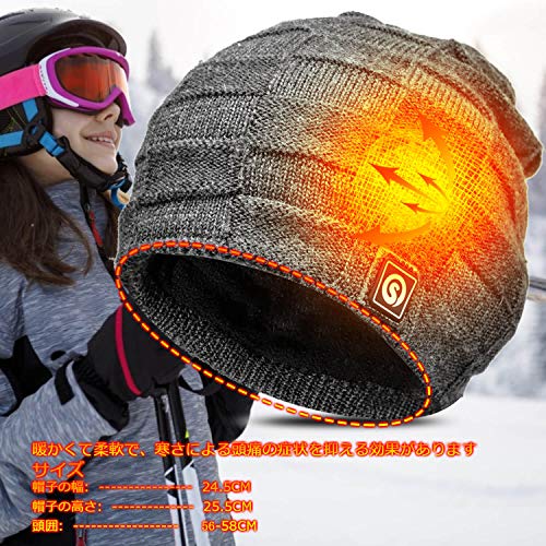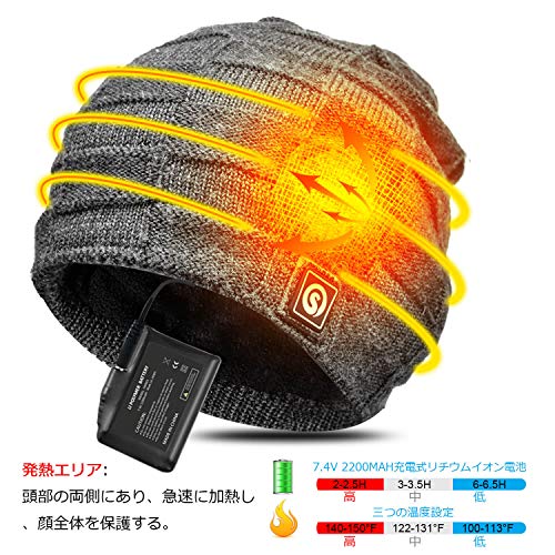素材にフリースとコットン素材を採用しているニット帽で、頭部の両側に頭と耳を温められる発熱体が入っている特徴を持つ電熱帽子でもあり、寒いゲレンデの上でスキーをしている時にも暖かい帽子です。全部で3段階までの温度設定に対応しています。また帽子に合うバッテリーを入れられるポケットも付いていて便利です。