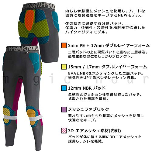 伸縮性や速乾性に優れているメッシュ生地を採用していて、3Dエアメッシュの切り返し仕様なので、スノーボードの時に汗をかいた場合にもムレにくいです。また着用した際にも目立ちにくいスリムシルエットのプロテクターです。膝部分には調整ベルトが付いているのでフィット感を高める事が出来ます。パットは下半身の動きにもしっかりと追従してくれて、衝撃からしっかりとダメージを軽減することが可能なEVAとNBRボンディングフォームの多重構造パットを採用しています。