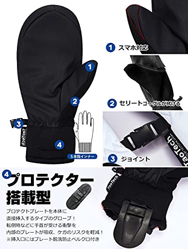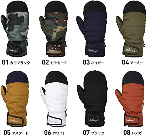 ミトン内は5本指タイプとなっている手袋で、雪が付着しても中まで水分が浸透しない防水性を備えていますので、雪山でのスノーボードの時にも手が冷えないように快適に身につけられます。