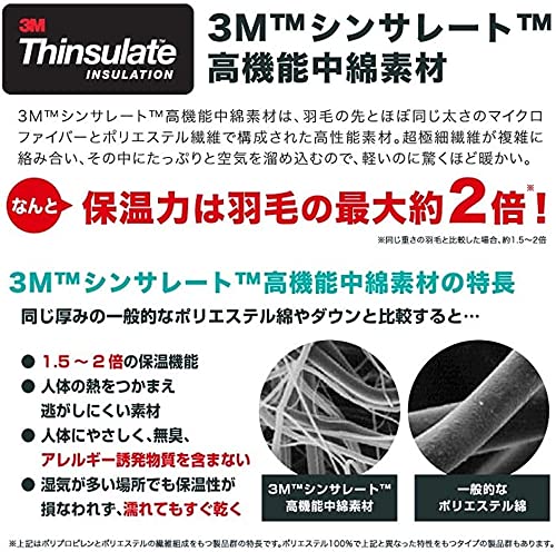 天然羽毛とほぼ同等の太さのマイクロファイバー・ポリエステル繊維で構成されている高機能中綿素材が充填されており、たっぷりと空気を溜め込む性質がありますので、軽量ながらも防寒性に優れていて、ゲレンデでスノーボードを楽しんでいる時にも手を冷やさないように身につけられます。