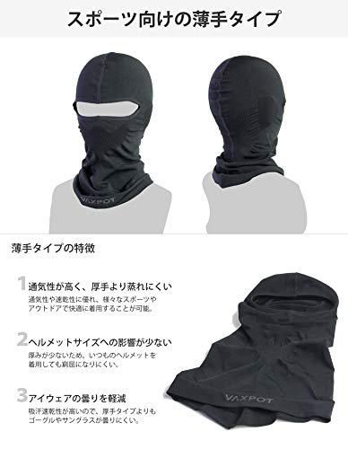 速乾性にも優れているので、汗をかいた時にもべたつき少なく快適さが維持されます。抗菌加工も施されているので、汗の雑菌の繁殖を防ぎ、衛生的に活用していける人気バラクラバです。薄手なのでヘルメットともスタイル良く合わせられます。