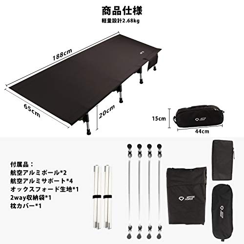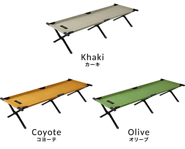 コストパフォーマンスに優れているコットを探しているという方には、こちらのアイテムがおすすめです。ブラックとカーキの2色から選択できるので、自分の好みに合わせてデザインを選べます。