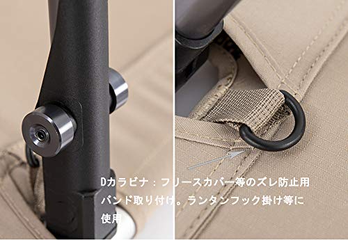 ハイコットにするレッグパーツを除くとさらに軽くなり、バイクでも持ち運びやすくなりますよ。寝床となる生地の裏面にDリングがありマットのズレ防止のベルトを通したりランタンを吊るせて便利です。