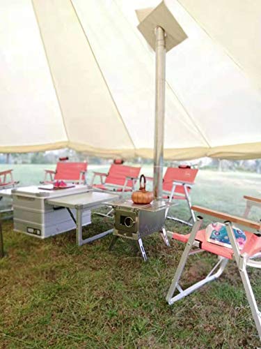 石油ストーブよりも火力に優れていますので、真冬の屋外でも体をしっかりと温められる煙突付き暖炉です。4本の脚によってしっかりとテント内にも設置できます。上に調理用の鍋を置いて保温する使い方もできます。尚、煙突から放たれる煙を逃せるスペースを確保するのがテント内で使う場合の注意点です。
