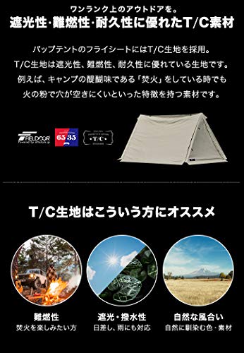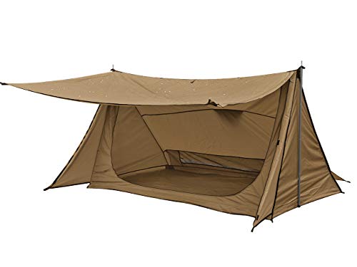 遮光性や難燃性や耐久性に優れているポリコットンのフライシートを採用している軍用仕様のテントで、焚き火をしている時にも穴が空きづらい特徴があります。空間を広く使える二又ポールを採用している事によりデッドスペースもなくなっていて、テント内部の空間を広々と使える特徴もある一人用テントです。