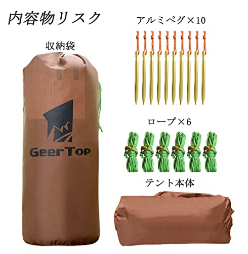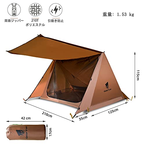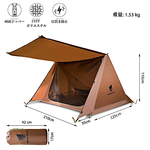 GeerTopから販売されている、1~2人用パップテントになります。このテントは専用のバッグに収納するとサイズが約42×17×17cm、重量は約1.53Kgと非常にコンパクトで軽量なのが特徴。持ち運びの際邪魔にならないので、かさばらないパップテントを探している方におすすめのテントです。