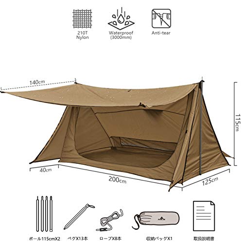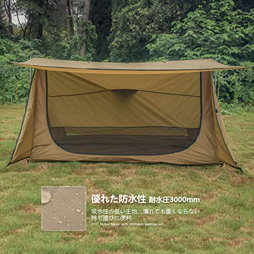 Anlikというブランドメーカーより販売されているこちらのパップテントは、貼り方シンプルで設営や撤収もスムーズにできます。選び方ではブラウンとグリーンの2種類のカラーより決められる一人用テントです。