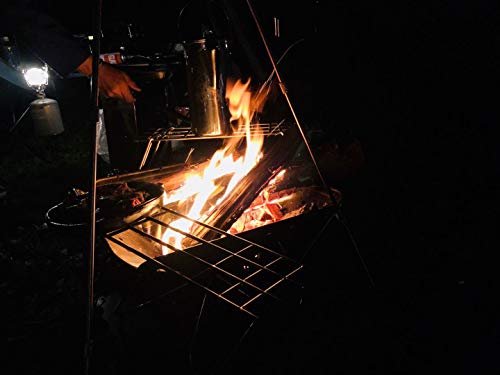 焼き網タイプの焚き火用五徳は携行性の高さがおすすめポイントです。もともとはバックパッカーがザックに突っ込んで持ち歩いていた焚き火用の五徳ですので、軽量でコンパクトなものが多いですね。工夫して便利に使えるのが焼き網タイプの特徴。焚き火台で使うのはもちろん、バーベキューパーティの延長で焚き火をするのにも使えます。直火OKのキャンプ場でワイルドに使うのもかっこいいですね。