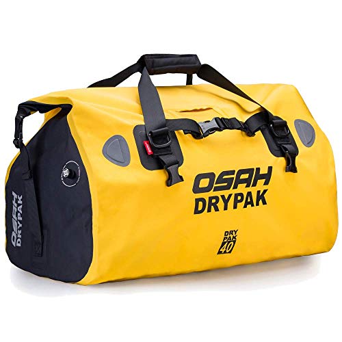 タナックスのタフザックD50は質実剛健な雰囲気がかっこいいバイク用防水シートバッグです。大型で幅は60cmもあり、キャンプツーリングでバイクに積載できるシートバッグでは限界幅。これ以上大きなシートバッグはサイドバッグを取り付けたクルーザーやパニアケースを積んだアドベンチャーツアラー向きです。幅が長いシートバッグはパッキング時の重量配分が難しいものの、低くバイクに固定できますので、操縦安定性が確保できます。ちなみに、タナックスにはさらに大容量のタフザック70もありますね。