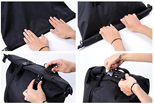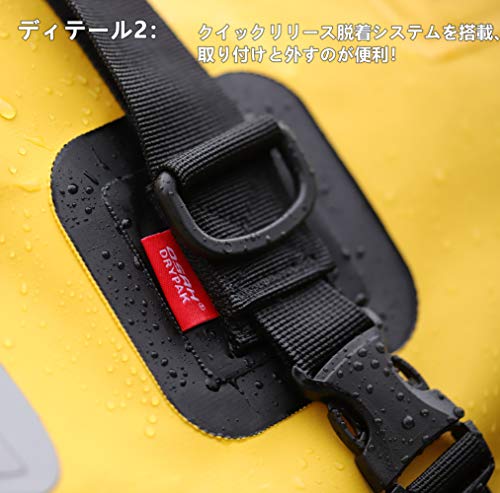 ドッペルギャンガーのターポリンデイバッグはシートバッグにもできる防水バッグです。ショルダーハーネスを外せば6個のDカンでバイクのシートに固定できます。防水バッグは気密性が高いので、閉じると空気で膨らみがち。しかし、ターポリンデイバッグは内部の空気を抜くエアバルブがありますので、スマートでおしゃれなシルエットを維持できます。20Lの容量は背負ってバイクに乗っても邪魔になりませんし、男前なカラーリングは女性が使ってもおしゃれです。