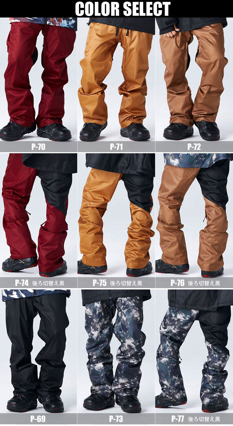 普段着では着ることが少ないビビットのカラフルなパンツです。派手すぎないシンプルなジャケットと合わせやすいですよ。ズボンタイプですが、腰回りまでパウダーガードがあり雪が中に侵入しにくい構造になっていて、腰回りの保温効果もあります。高い防水性、透湿性があり高機能なパンツです。デザイン性も高く評価されていますよ。