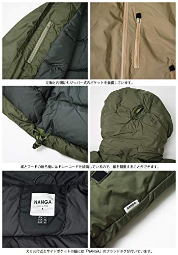 760フィルパワーの暖かい羽毛を150g充填しているので、厚みがやや薄いインナーダウンと一緒にレイヤードして着れば、冬場のキャンプも体を冷やさないように快適に着用できます。全部で7つものポケットが設けられているので、焚き火用のグローブなどを使わない時に入れておくのにも便利です。ナンガの日本製表記が付いている薄いブランドタグも付いていておしゃれです。