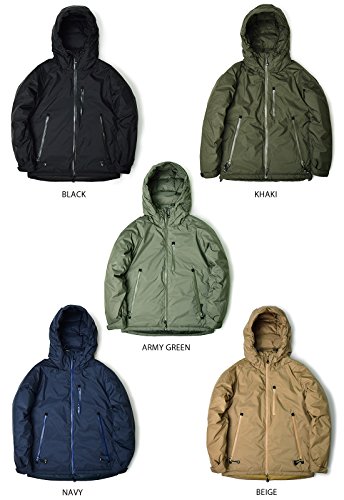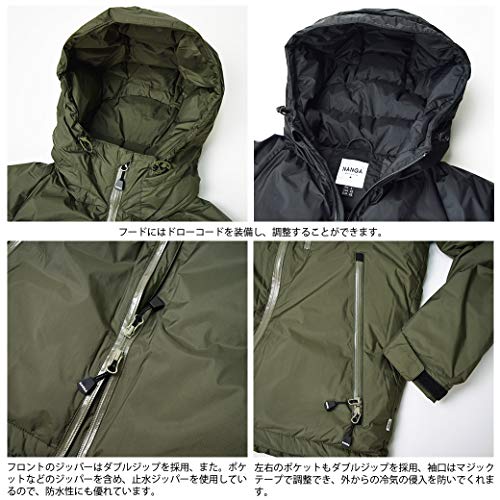 表地にはナンガの高性能な素材・オーロラテックスを採用しているので、防水・透湿性能にも非常に優れており、キャンプや登山で着用中に雨が降ってきても快適に着ていられるダウンジャケットです。高品質なダウンも充填されていますので、寒さを感じやすい季節も、体を暖かい状態にキープしてくれます。カラーはブラックとカーキとネイビーの3色より選べます。MA1スタイルのアームポケットや、両サイドには内ポケットも装備されています。madeinjapanを証明する薄いブランドタグも付いています。