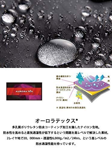 | 素材 | 表地:ナイロン100%(オーロラテックス)、裏地:ナイロン100%(40デニールナイロンタフタ)、中綿:ダウン(DX120g) |
