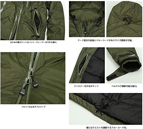 耐水圧が2万mmで、透湿性が6000gという高レベルの防水透湿性を誇るジャケットになりますので、登山やキャンプなどで悪天候になった場合にも、安心して着用できる高品質なウェアです。防水・透湿性能だけでなく、ヨーロピアンダックダウンが充填されているので、寒さは感じやすい冬のキャンプ・登山においても体を暖かい状態に保つダウンジャケットです。フードはドローコードで調節する事ができます。デザインもおしゃれでカラーはネイビーとアーミーグリーンの3色から選べます。