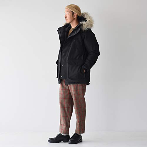 | 素材 | 表地:コットン60%,ナイロン40%(コーティング等樹脂加工)、中綿:ダウン90%,その他の羽毛10%、裏地:ポリエステル100%、ファー:毛皮(ラビット) |