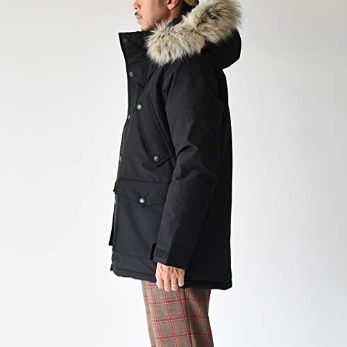 撥水性に優れたロクヨンクロスを素材に採用しているブランド定番の人気ジャケットです。表面に風・雨・雪に耐えられるテフロン加工が施されているアウターになりますので、悪悪天候時にも快適に着続けられます。表地と裏地の中身には寒さの感じやすい季節にも暖かさを長時間保ち続けられるグレーダックダウンが封入されています。暖かさ抜群なコヨーテファー付きフードも付いており、屋外で過ごしている時に寒さを感じた場合には首元から頭までを覆って防寒できます。時期や時間帯に応じてもファーは取り外す事もできます。