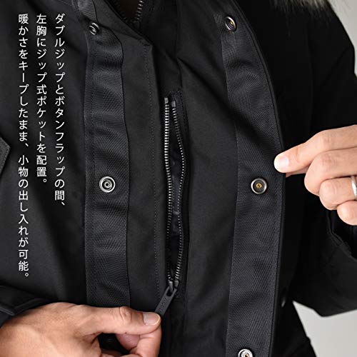 ポケットの種類も豊富な収納性に優れる人気ダウンジャケットです。フロントはダブルフラップ仕様となっているため、冬場のアウトドアでも冷気が入り込まないようにできます。袖口部分は内側がゴムシャーリング仕様となってて、裾部分はアジャスタードローコードが付いているのでサイズ感を調整できます。左内側に右内側にはポケットが付いています。フロント部分にも大きなポケットが付いているので、小物を分けて入れておけます。色はブラック・ネイビー・オリーブの3種類から選ぶことができ、サイズはSMLXLの4種類から選べます。