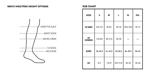 こちらの製品は、メンズ、レディースとも、サイズはS~XXLの5サイズ、カラーリングは、ブラック~ブラウン~グレー系の5色がラインナップされています。しっかりとした厚手の靴下なので、1足持っていると冬山などのトレッキングやハイキングに役立つはず。ぜひ手に取って確認したい製品です。
